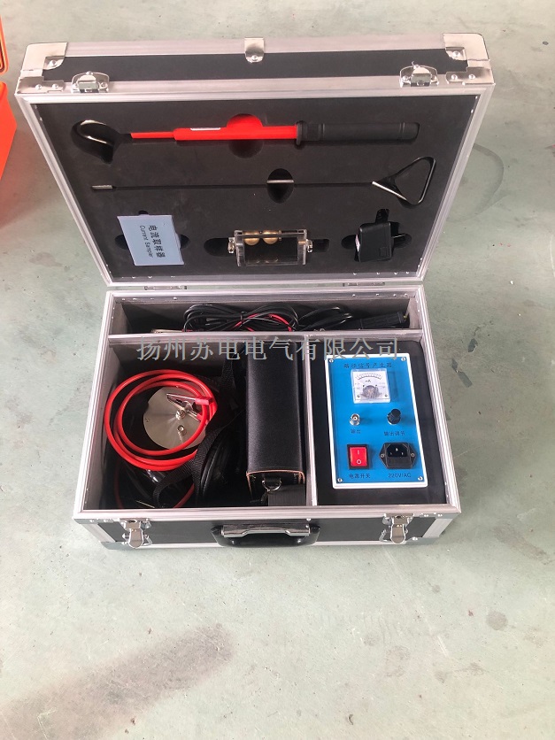 在地埋動力電纜的一端施加脈沖高壓,使地埋動力電纜的故障點產(chǎn)生放電電弧,放電電弧產(chǎn)生電磁波和振動聲波——聲磁信號,數(shù)顯同步定點儀同步接收放電電弧輻射的聲磁信號,根據(jù)數(shù)顯同步定點儀接收的電磁波和聲波時間差,用數(shù)字方式轉(zhuǎn)換顯示成接收機定點探頭到故障點的直線距離。同時,沿電纜埋設(shè)的路徑,依據(jù)探頭接收的聲波從耳機判斷故障點放電振動聲音的大小。在故障點的正上方,數(shù)顯屏顯示的讀數(shù)蕞小,振動波的聲音蕞大,由此就能準確判斷出故障點的位置。